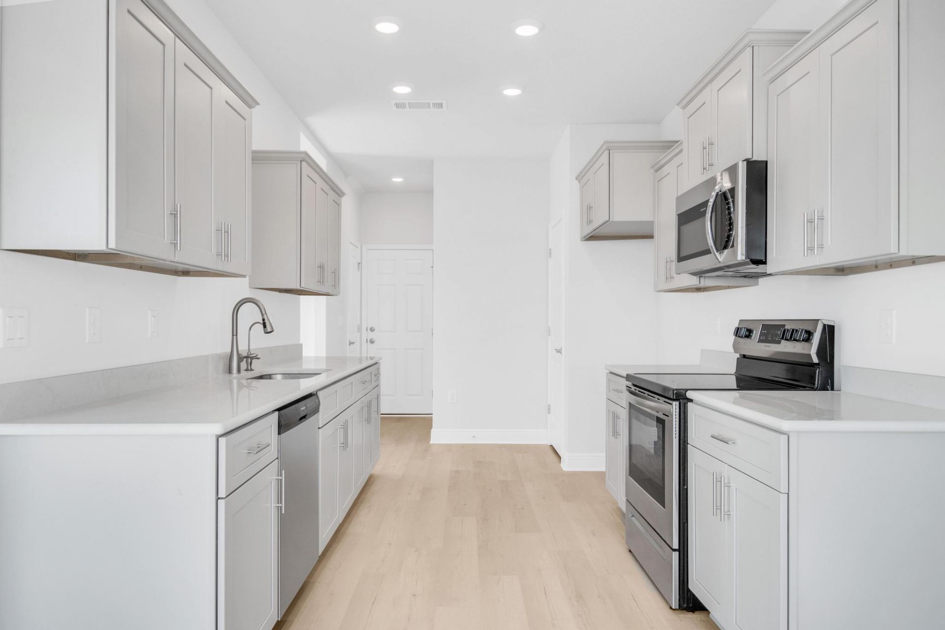 This stunning two-story Craftsman-style home offers 4 bedrooms and 2.5 baths with timeless curb appeal, featuring Hardiboard siding and a brick skirt. Inside, enjoy 9' ceilings throughout and elegant 10' tray ceilings in the owner's suite, creating a bright, open feel. The kitchen and baths showcase quartz countertops with sleek black faucets and cabinet hardware, while durable CoreTec luxury vinyl plank flooring runs throughout the home. The oversized owner's suite includes a spacious walk-in closet, providing a comfortable and private retreat. Designed with style, comfort, and everyday living in mind, this beautiful new home truly has it all. Located across from the community pool & cabana. Only 20 mins to 30A beaches! *Pictures are of a similar 1817 plan.* Est. June/July 2026 completion